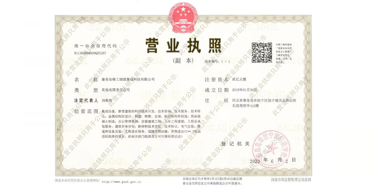 - 領(lǐng)導(dǎo)致辭??朋友們,感謝您對秦皇島精工綠筑科技集成有限公司的關(guān)懷與厚愛。在社會各界的信任與支持下,秦皇島精工綠筑科技集成有限公司于2018年成立。